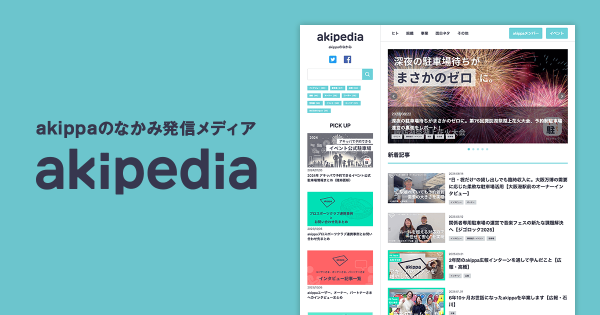 - ✓ og:description — akipediaは、“なくてはならぬ”をつくる「akippa」の“なかみ”がわかる、辞典のようなメディアです。メンバー、組織、事業にまつわるさまざまな情報を発信していきます。