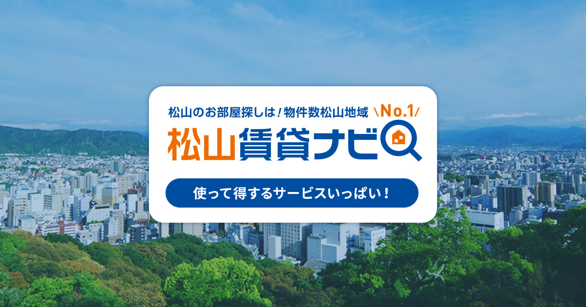 - ✓ og:description — 【松山賃貸ナビ】では、引越し費用0円サービスやオンライン内見を実施中!自社管理物件は保証人も不要!市内に4店舗のアパマンショップを展開しており、愛媛・松山市でNo.1の物件数であなたにピッタリのお部屋をお探しいただけます。