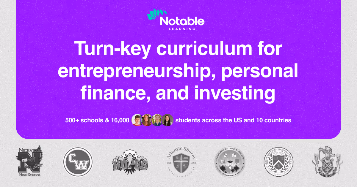 - ✓ og:description — Turn-key curriculum for entrepreneurship, personal finance, and investing built for middle & high school students. Ready to launch, easy to teach.