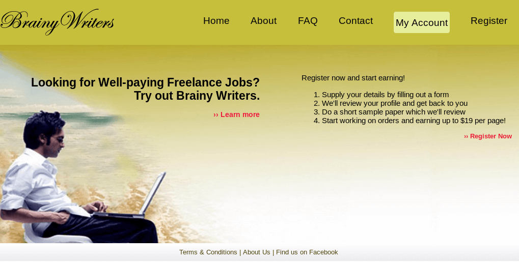 - ✓ og:description — Register now and start earning! Supply your details by filling out a form. Do a short sample paper which we'll review with your profile and get back to you. Start working on orders and earning up to $19 per page! »» Register Now