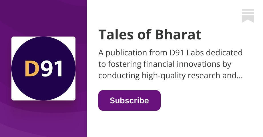 - ✓ og:description — A publication from D91 Labs dedicated to fostering financial innovations by conducting high-quality research and developing fintech ideas for Bharat. Click to read Tales of Bharat, a Substack publication with thousands of subscribers.
