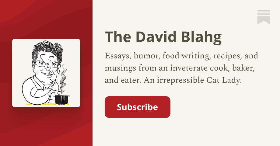 - ✓ og:description — Essays, humor, food writing, recipes, and musings from an inveterate cook, baker, and eater. An irrepressible Cat Lady. Click to read The David Blahg, by David Leite, a Substack publication with thousands of subscribers.