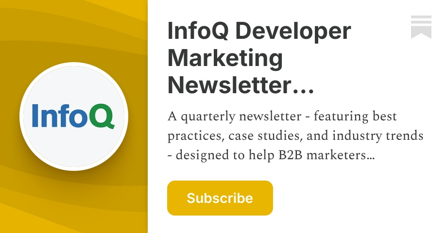- ✓ og:description — A quarterly newsletter - featuring best practices, case studies, and industry trends - designed to help B2B marketers effectively reach the software development community. Click to read InfoQ Developer Marketing Newsletter (Quarterly), a Substack publication with thousands of subscribers.