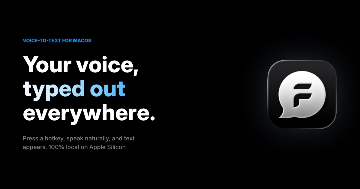 - ✓ og:description — Free voice-to-text dictation for macOS. Press a hotkey, speak, and text appears anywhere. Powered by Whisper on Apple Silicon - 100% local, no cloud.