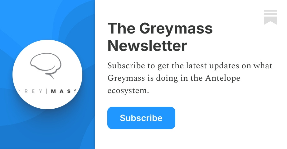 - ✓ og:description — Subscribe to get the latest updates on what Greymass is doing in the Antelope ecosystem. Click to read The Greymass Newsletter, a Substack publication with hundreds of subscribers.