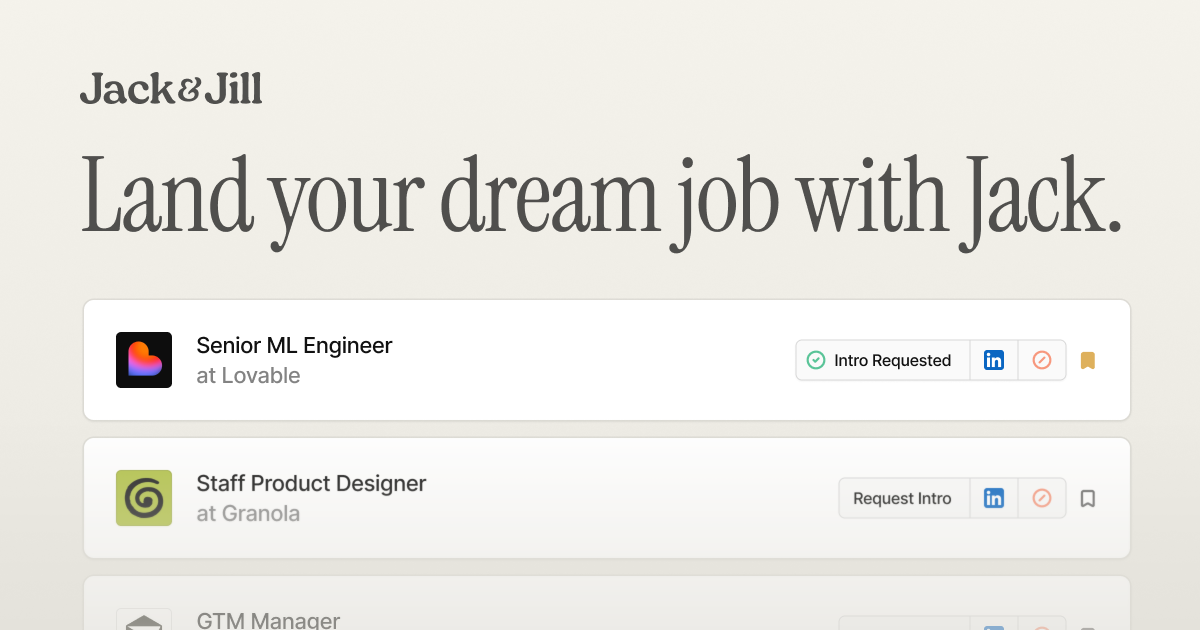 - ✓ og:description — Meet Jack, your AI career agent. Get hyper-personalised startup roles, interview coaching, salary benchmarking, and direct introductions to hiring managers. Completely free.