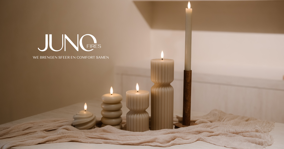 - ✓ og:description — Sfeervolle, realistische ledaarsen met timer en afstandsbediening. Veilig voor kinderen en huisdieren. Het perfecte, veilige alternatief voor echte kaarsen. Geniet van warme kaarsensfeer en stijlvolle sfeerverlichting zonder vuurgevaar. Ontdek JUNOfires led kaarsen