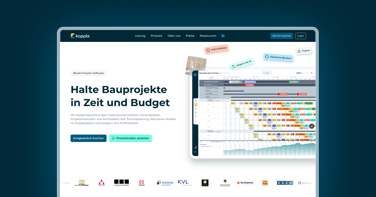 - ✓ og:description — koppla ist die smarteste Lösung für intuitive und kollaborative Terminplanung und Steuerung – in Echtzeit für alle Bauprojekte, Phasen und Projektbeteiligten.
