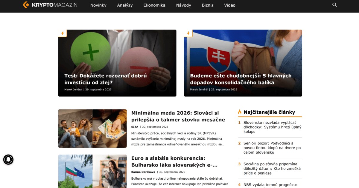 - ✓ og:description — Aktuálne správy o kryptomenách, investovaní a ekonomike. Bitcoin, finančné triky, návody pre investorov a daňové optimalizácie.