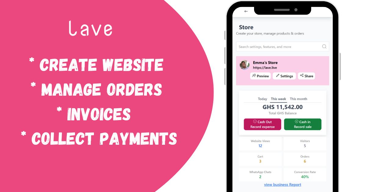 - ✓ og:description — Launch your own e-commerce website, receive orders, collect payment, record sales & expenses in one app — built for Small African business owners