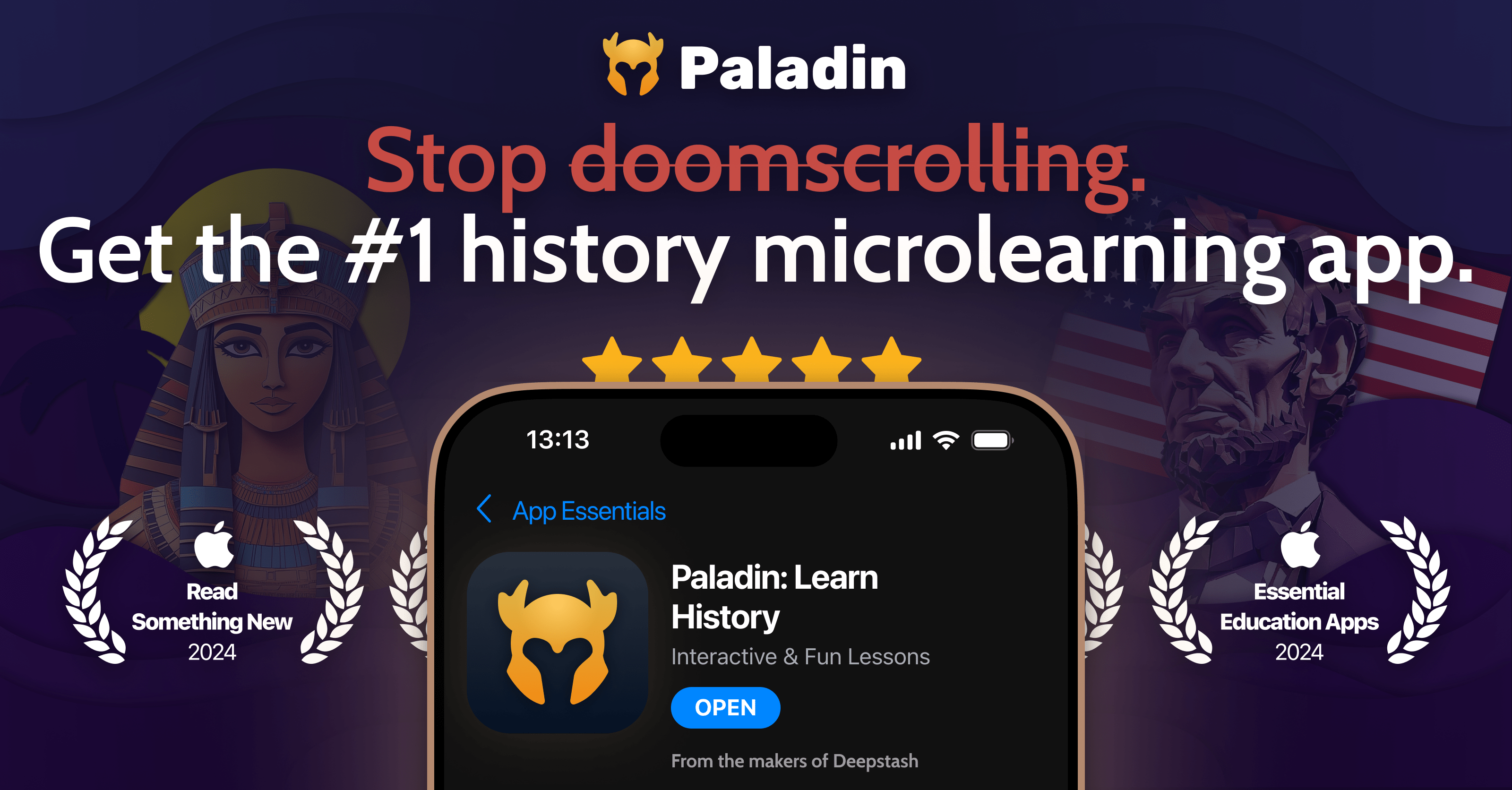 - ✓ og:description — Paladin is a revolutionary history microlearning app that teaches history in a fun and engaging way. Discover captivating stories of legendary historical figures through interactive gameplay and daily lessons.