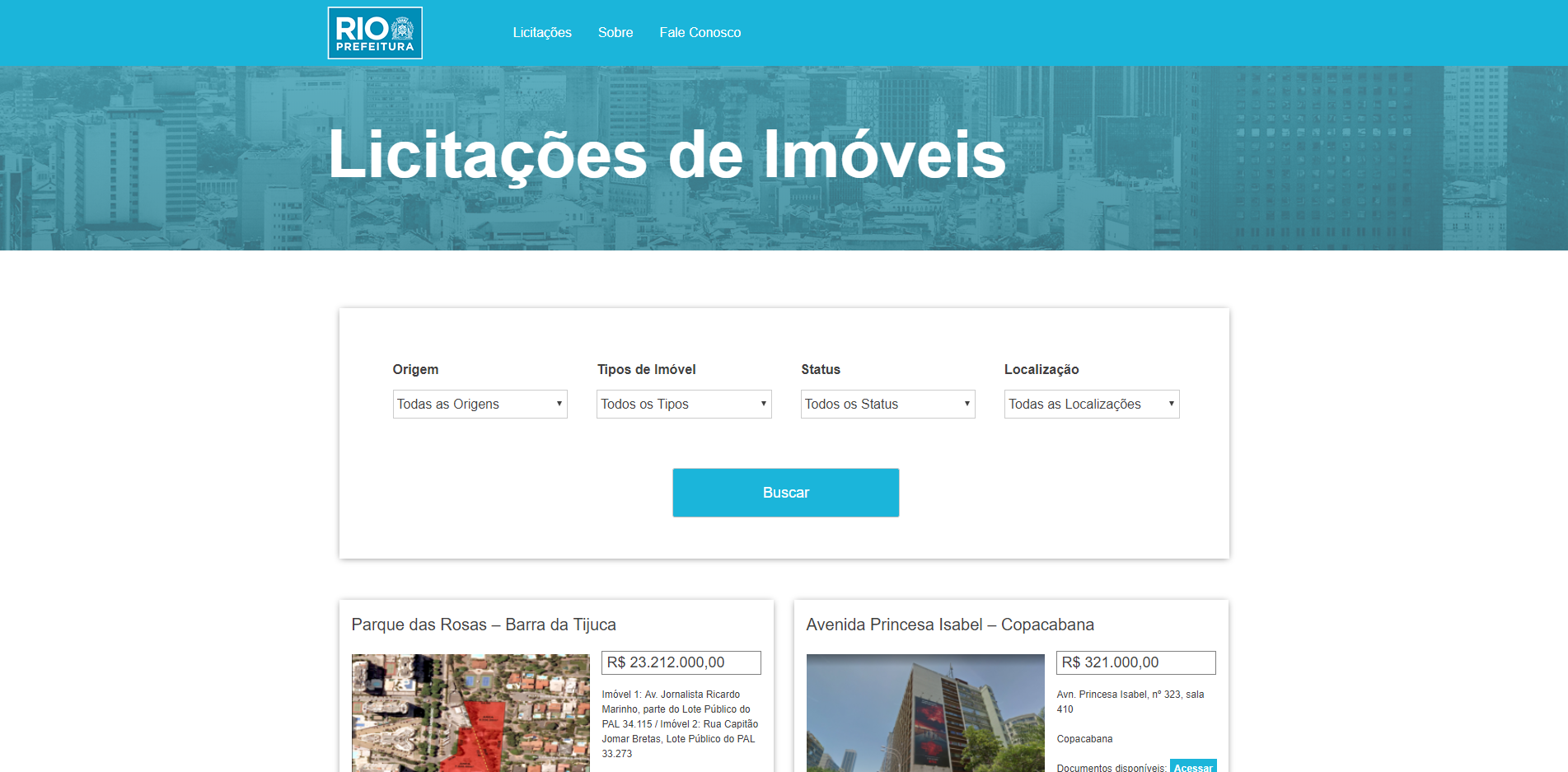 - ✓ og:description — O Portal Licita Imóveis Rio, da Prefeitura da Cidade do Rio de Janeiro, apresenta os imóveis de propriedade da Administração Municipal que estão disponíveis para comercialização, via alienação, concessão, permissão e cessão de uso.