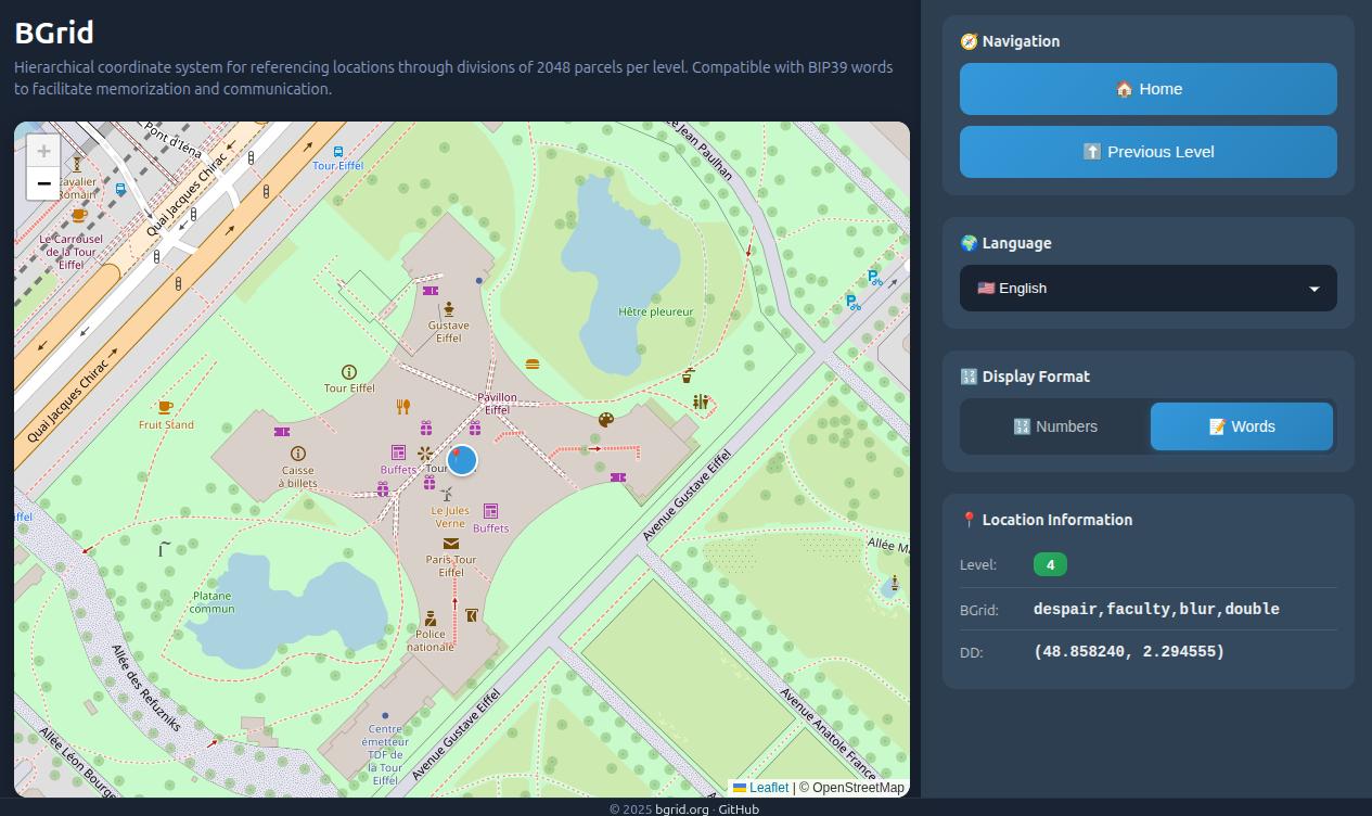 • ✓ og:description — Reference any point on Earth using a hierarchical grid with numeric or BIP39 word formats.