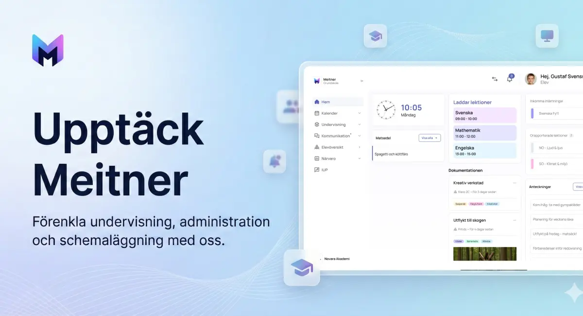 - ✓ og:description — Upptäck Meitner – en modern och användarvänlig skolplattform som samlar allt på ett ställe. Förenkla undervisning, administration och schemaläggning med oss.