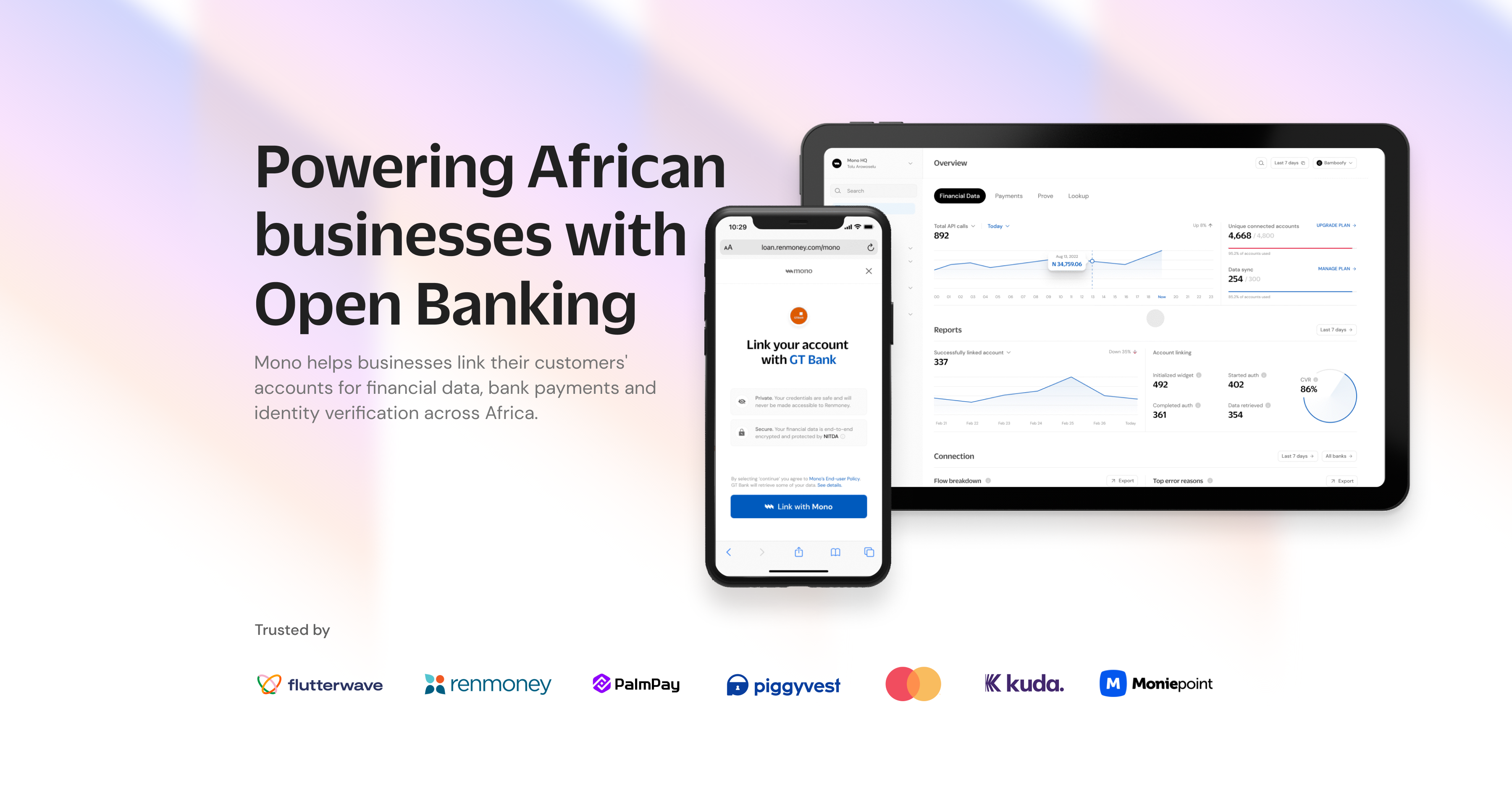 - ✓ og:description — Mono helps businesses link their customers accounts for financial data, bank payments and identity verification across Africa.