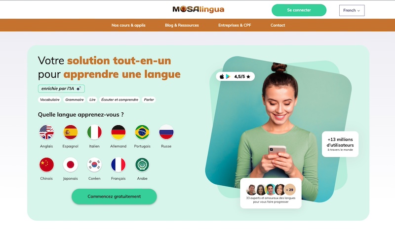 - ✓ og:description — MosaLingua vous aide à apprendre une langue grâce à sa méthode efficace qui s'adapte à vos besoins et à votre niveau. Découvrez nos cours de langues !