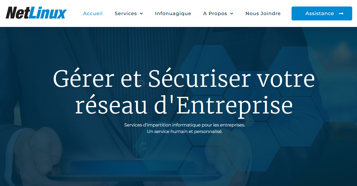 - ✓ og:description — NetLinux vous offre la gestion complète de votre réseau informatique pour les entreprises de la région de Sherbrooke, Estrie.