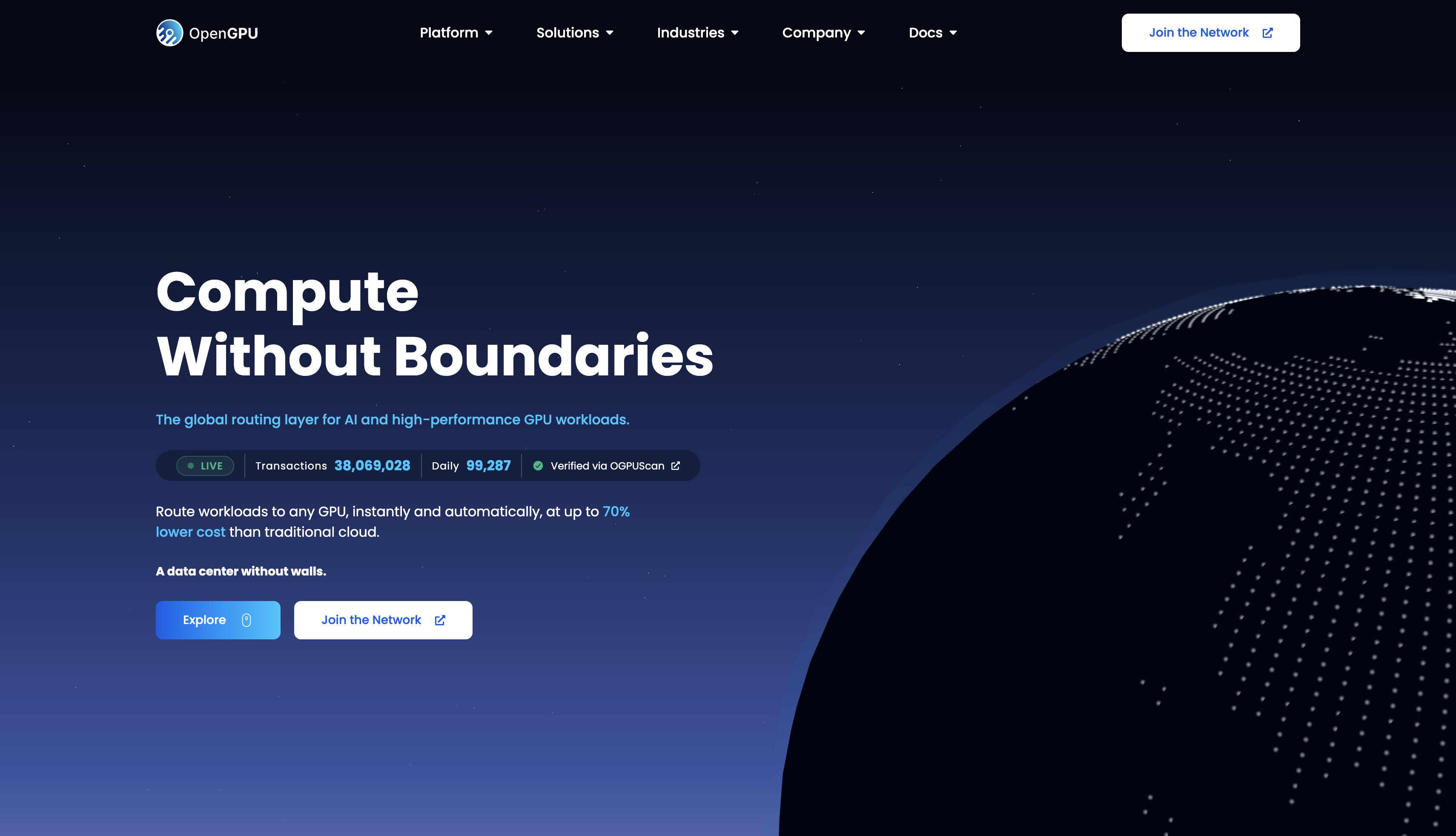 - ✓ og:description — OpenGPU is the live decentralized GPU network with 260+ providers and 41M+ verified tasks. Run AI workloads up to 70% cheaper than traditional cloud. Join as a developer or GPU provider.