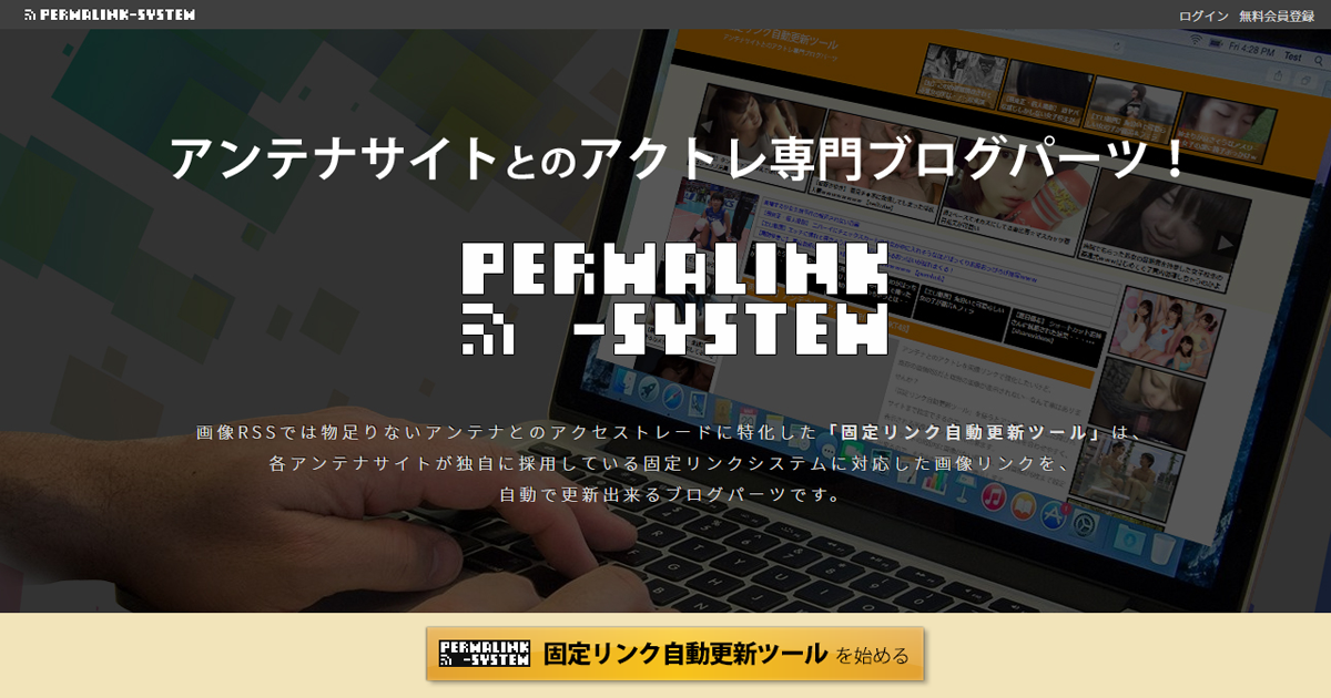 - ✓ og:description — 各アンテナサイトが独自に採用している固定リンクシステムに対応した画像リンクを、自動で更新出来るブログパーツです。