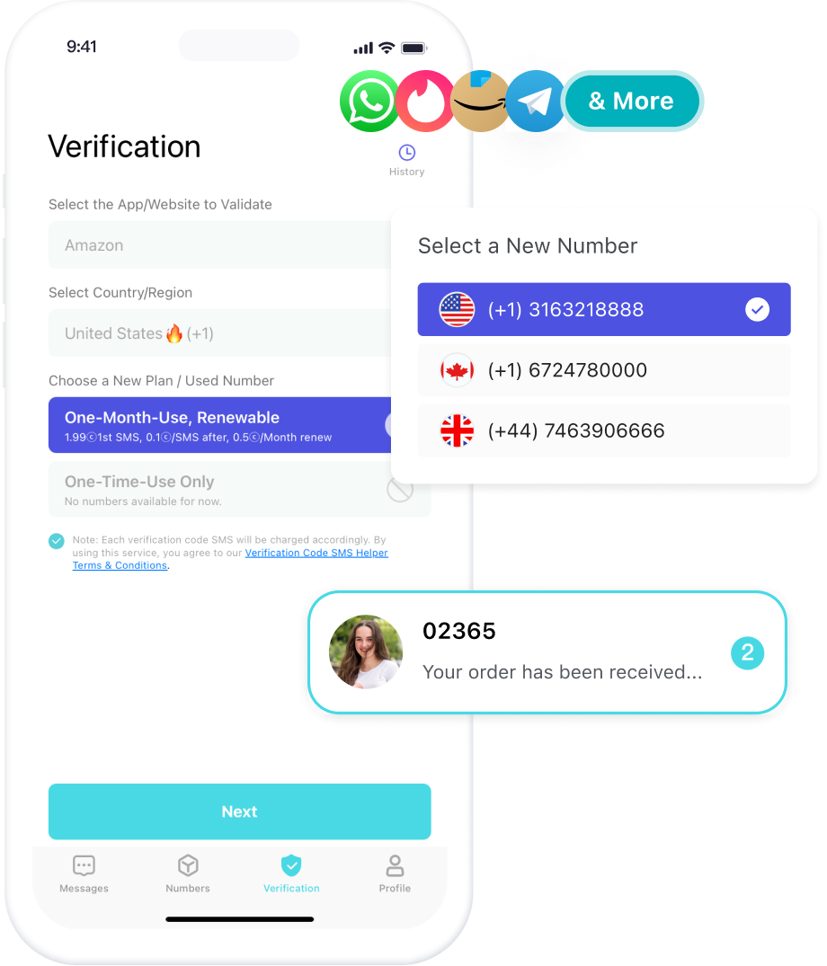 - ✓ og:description — Utilize second phone numbers to instantly receive OTP and SMS verification codes for secure account sign-up, authentication and validation.