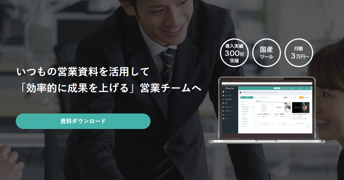 - ✓ og:description — Sales Docは、お客様に送った資料や動画がいつ見られているのか、どこが良く見られているのかを可視化できる「営業向け追客ツール」です。