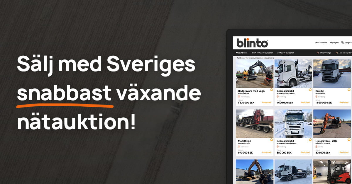 - ✓ og:description — Gör som tusentals andra företag, sälj fordon, maskiner och verktyg med Blinto! Hitta och kontakta din närmsta auktionsmäklare idag!