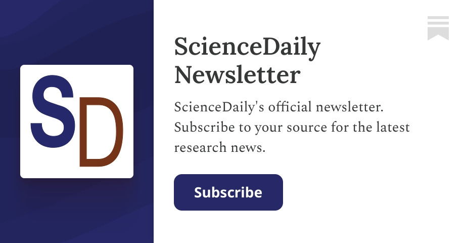 - ✓ og:description — ScienceDaily's official newsletter. Subscribe to your source for the latest research news. Click to read ScienceDaily Newsletter, a Substack publication with hundreds of thousands of subscribers.