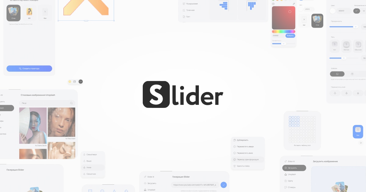 - ✓ og:description — Загрузите текст или озвучьте идею — Slider Ai сам соберёт презентацию: слайды, тексты, изображения, 3D-модели и диаграммы. Попробуйте бесплатно онлайн на русском.