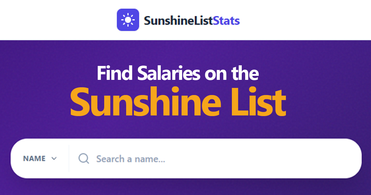 - ✓ og:description — Search the Ontario Sunshine List database of public sector salaries. Find employees, employers, positions, total compensation and salary history for anyone earning $100,000+ in Ontario.