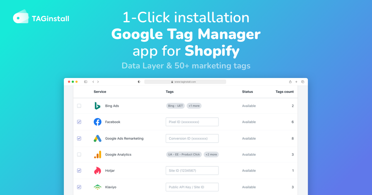 - ✓ og:title — Google Tag Manager & Data Layer App for Shopify | TAGinstall
