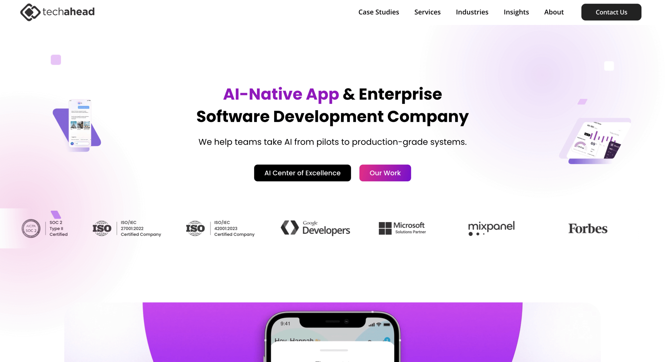 - ✓ og:description — TechAhead builds enterprise AI systems, mobile apps, and cloud platforms for Fortune 500 clients. SOC 2 Type II & ISO 42001 certified. 16+ years of experience. AWS Advanced Tier Partner. Free consultation.