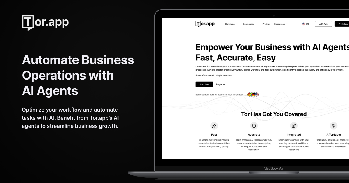 - ✓ og:description — Meet your new AI assistants that write, transcribe, record, summarize, and analyze for you. Replace lengthy manual tasks with Tor.app's AI assistants