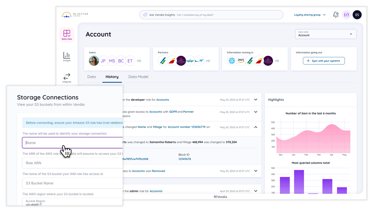 "text": "Explain the key features and how users interact with Vendia."